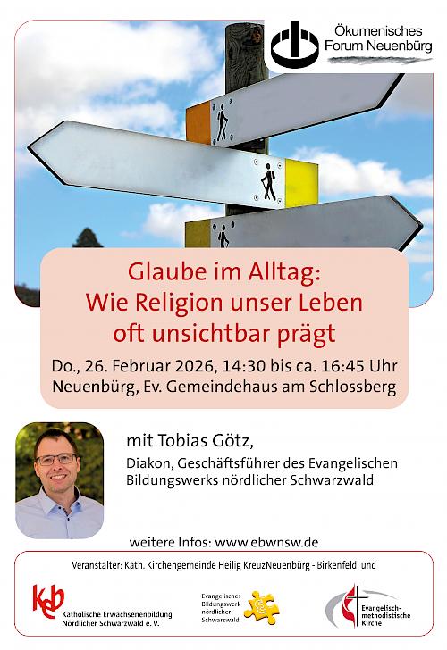 Glaube im Alltag: Wie Religion unser Leben oft unsichtbar prägt Herzlich Willkommen Donnerstag, 26. Februar 2026, 14.30 Uhr – ca. 16.45 Uhr im Ev....