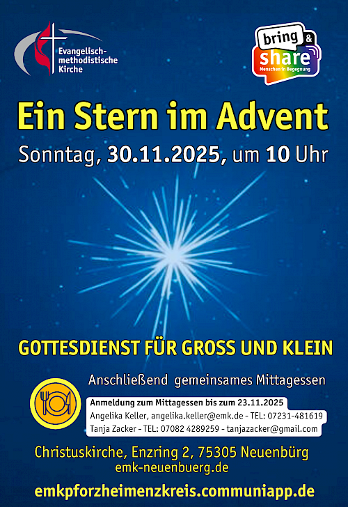 Herzlich willkommen zu - Ein Stern im Advent Am ersten Adventssonntag um 10 Uhr laden die Gemeinden Birkenfeld und Neuenbürg herzlich zu einem besonderen...