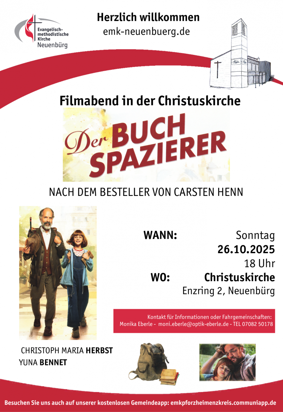 Ganz herzlich laden wir Sie am Sonntag, 26. Oktober 2025 um 18 Uhr zu unserem Filmabend in die Christuskirche, Enzring 2, Neuenbürg ein!